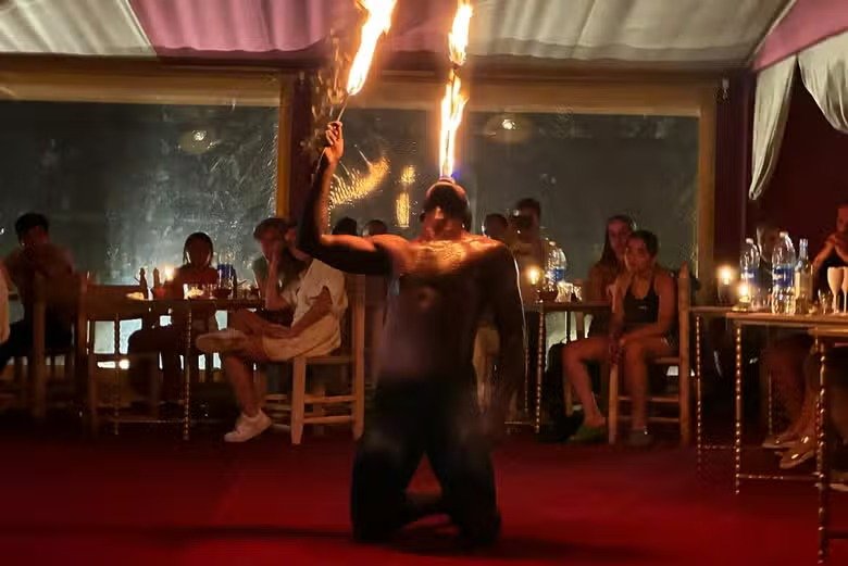 Más tarde, nos sentaremos alrededor de una fogata para deleitarnos con una cena al más puro estilo marroquí, compuesta por ensaladas, tajín de pollo, cuscús de verduras y un postre. Y no solo eso, sino que la velada estará amenizada con un espectáculo tradicional. Danza del vientre, tragafuegos, música gnawa… ¡Os fascinará!